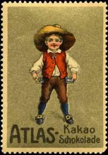 Atlas - Kakao Schokolade, Größe/Zustand: 5x4 , guter Zustand, Original alte Reklamemarke die seinerzeit für die Werbung benutzt wurde