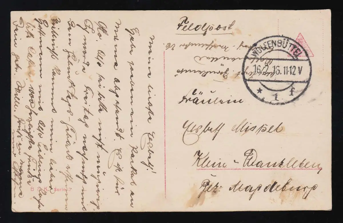 Junge Frau, Reichsflagge Eichenlaub Band in Reichsfarben, Wolfenbüttel 16.2.1916