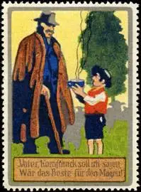 Vater, Kornfranck soll ich sagen, wär das Beste für den Magen ! , Größe/Zustand: 6x4 , guter Zustand, Original alte Reklamemarke die seinerzeit für die Werbung benutzt wurde