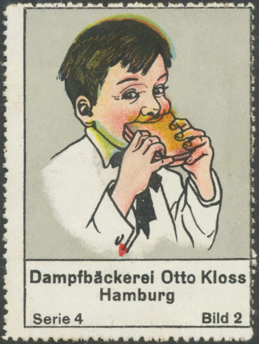 Dampfbäckerei, Serie 4, Bild 2, Größe/Zustand: 6x4 , Fehldruck, guter Zustand, Original alte Reklamemarke die seinerzeit für die Werbung benutzt wurde
