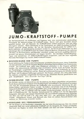 Junkers Jumo Kraftstoffpumpe Prospekt 1930er Jahre
