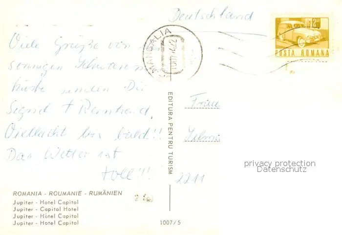 Jupiter_Rumaenien Hotel Capitol Jupiter Rumaenien postalisch gelaufen 1974 Erhaltung siehe scans [FriedD77] Frierer