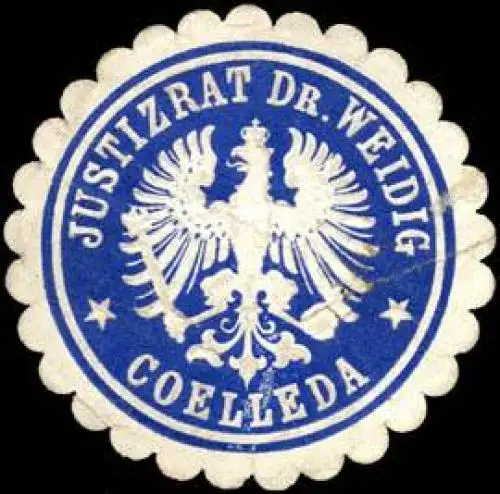 Coelleda, blau, weiß, geprägt, Größe/Zustand: 4 , fleckig, Original Verschluss-Siegelmarke aus Papier welche früher von Behörden, Firmen etc. zum Versiegeln der Briefe benutzt wurden