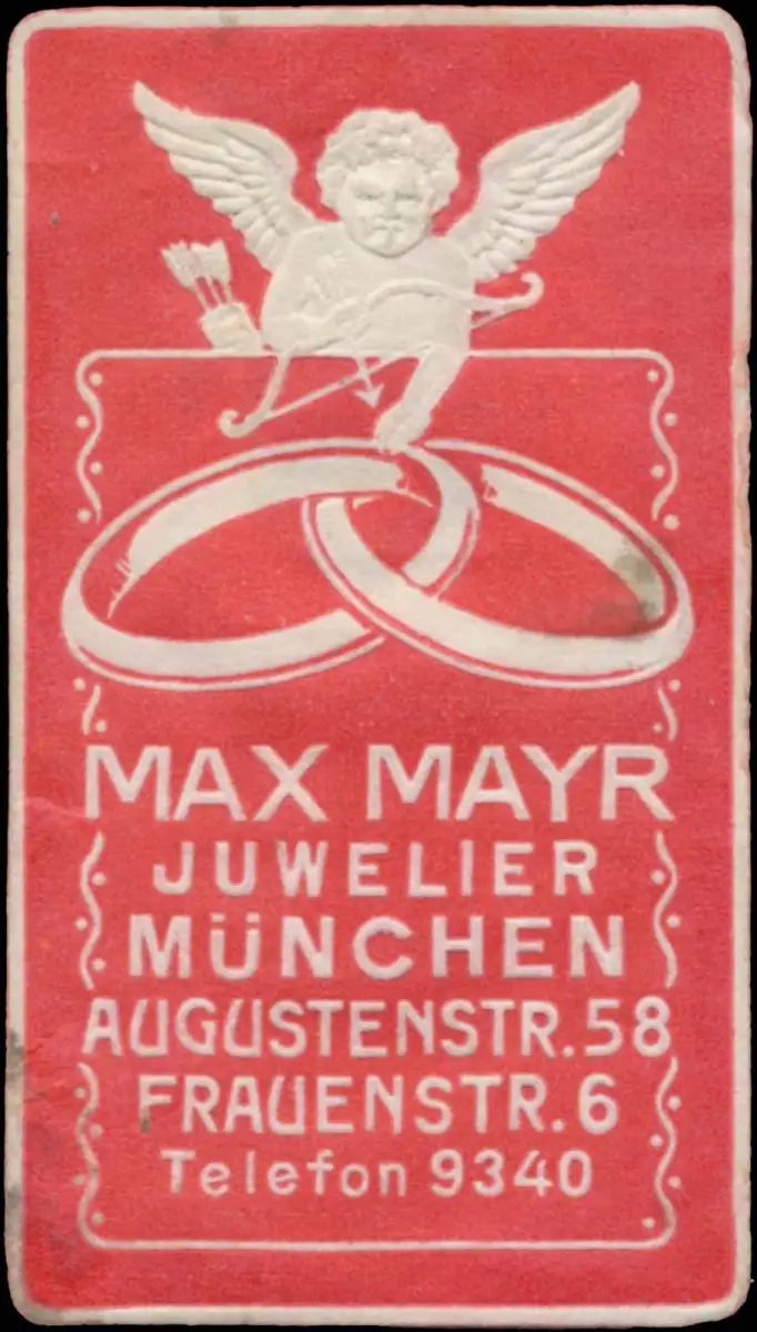 Augustenstraße 58, Frauenstraße 6, Engel, Größe/Zustand: 6x3 , fleckig, Original alte Reklamemarke die seinerzeit für die Werbung benutzt wurde