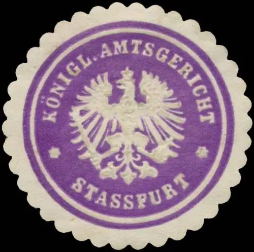 Stassfurt, violett, weiß, geprägt, Größe/Zustand: 4 , guter Zustand, Original Verschluss-Siegelmarke aus Papier welche früher von Behörden, Firmen etc. zum Versiegeln der Briefe benutzt wurden