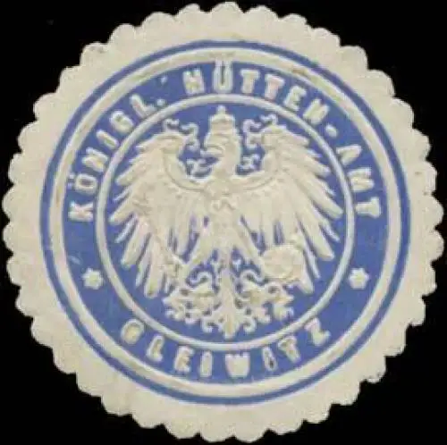 Hütten-Amt, Bergbau, blau, weiß, geprägt, Größe/Zustand: 4 , leicht fleckig, Original Verschluss-Siegelmarke aus Papier welche früher von Behörden, Firmen etc. zum Versiegeln der Briefe benutzt wurden
