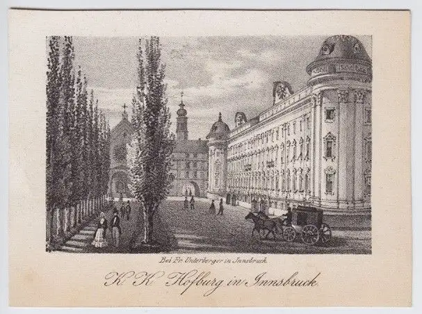 Innsbruck, F. Unterberger [ca. 1840]. Orig.-Stahlstich. Gest. von Steinicken. 9 x 12 cm (Blattgr.); 6,5 x 10 cm (Bildausschn).