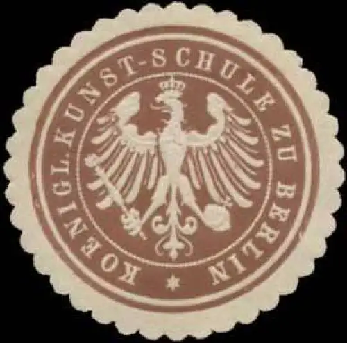 Kunstschule, braun, weiß, geprägt, Größe/Zustand: 4 , guter Zustand, Original Verschluss-Siegelmarke aus Papier welche früher von Behörden, Firmen etc. zum Versiegeln der Briefe benutzt wurden