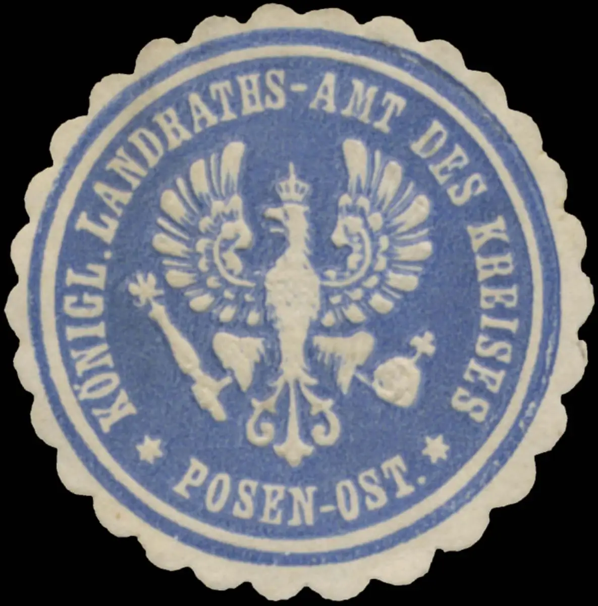 Landrat, blau, weiß, geprägt, Größe/Zustand: 3 , guter Zustand, Original Verschluss-Siegelmarke aus Papier welche früher von Behörden, Firmen etc. zum Versiegeln der Briefe benutzt wurden