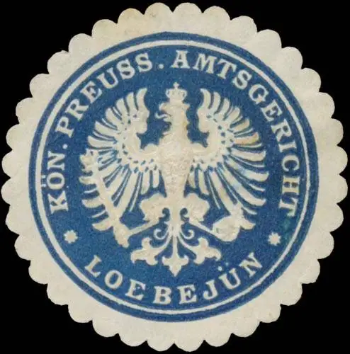 blau, weiß, geprägt, Loebejün, Größe/Zustand: 4 , guter Zustand, Original Verschluss-Siegelmarke aus Papier welche früher von Behörden, Firmen etc. zum Versiegeln der Briefe benutzt wurden