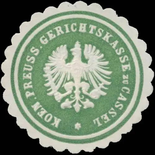 Cassel, grün, weiß, geprägt, Größe/Zustand: 4 , guter Zustand, Original Verschluss-Siegelmarke aus Papier welche früher von Behörden, Firmen etc. zum Versiegeln der Briefe benutzt wurden