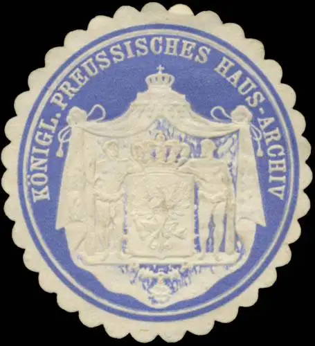 Haus-Archiv, blau, weiß, geprägt, Größe/Zustand: 4x3 , guter Zustand, Original Verschluss-Siegelmarke aus Papier welche früher von Behörden, Firmen etc. zum Versiegeln der Briefe benutzt wurden