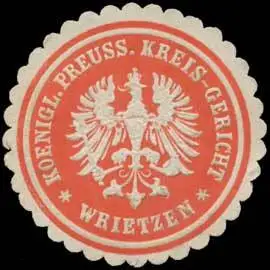 Wrietzen, rot, weiß, geprägt, Größe/Zustand: 3 , guter Zustand, Original Verschluss-Siegelmarke aus Papier welche früher von Behörden, Firmen etc. zum Versiegeln der Briefe benutzt wurden