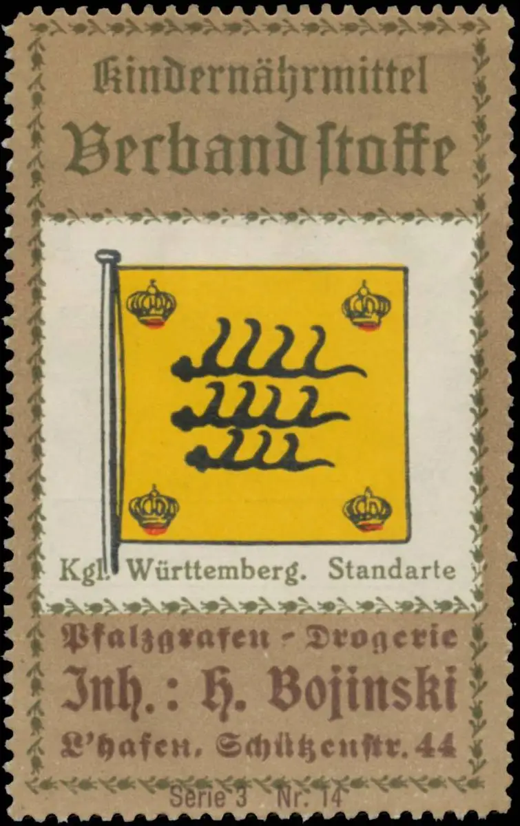 Kindernährmittel, Pfalzgrafen Drogerie Inhaber: H. Bojinski , Größe/Zustand: 6x4 , guter Zustand, Original alte Reklamemarke die seinerzeit für die Werbung benutzt wurde