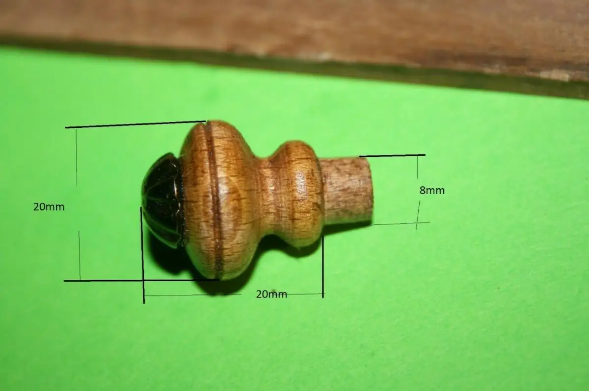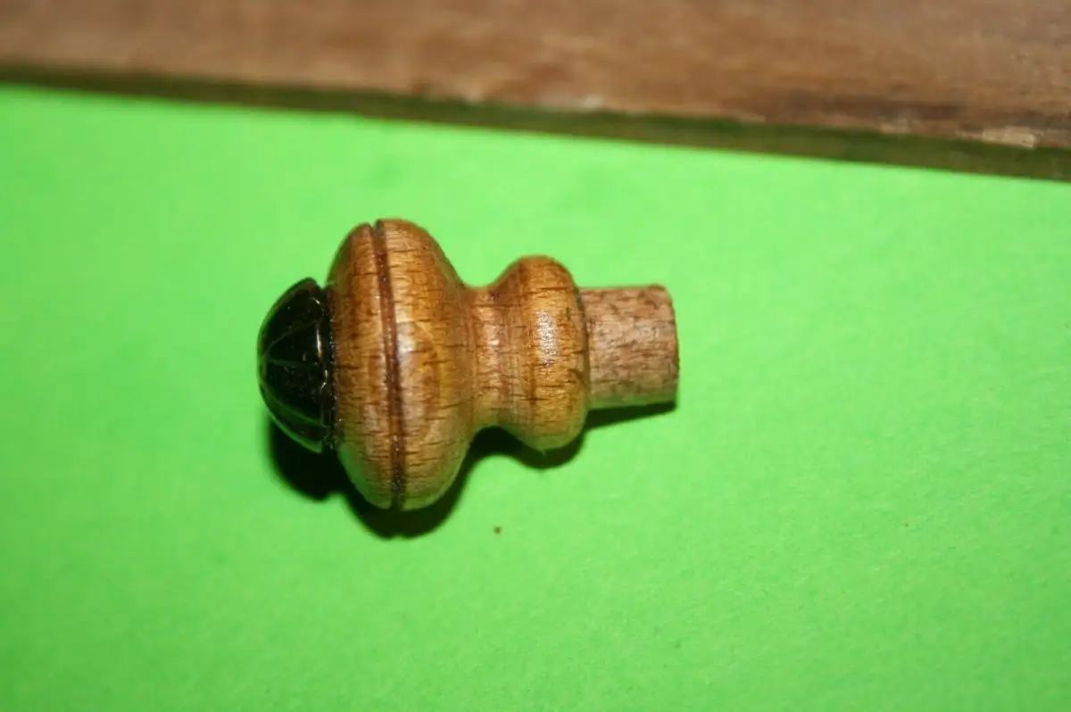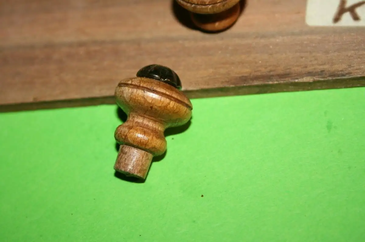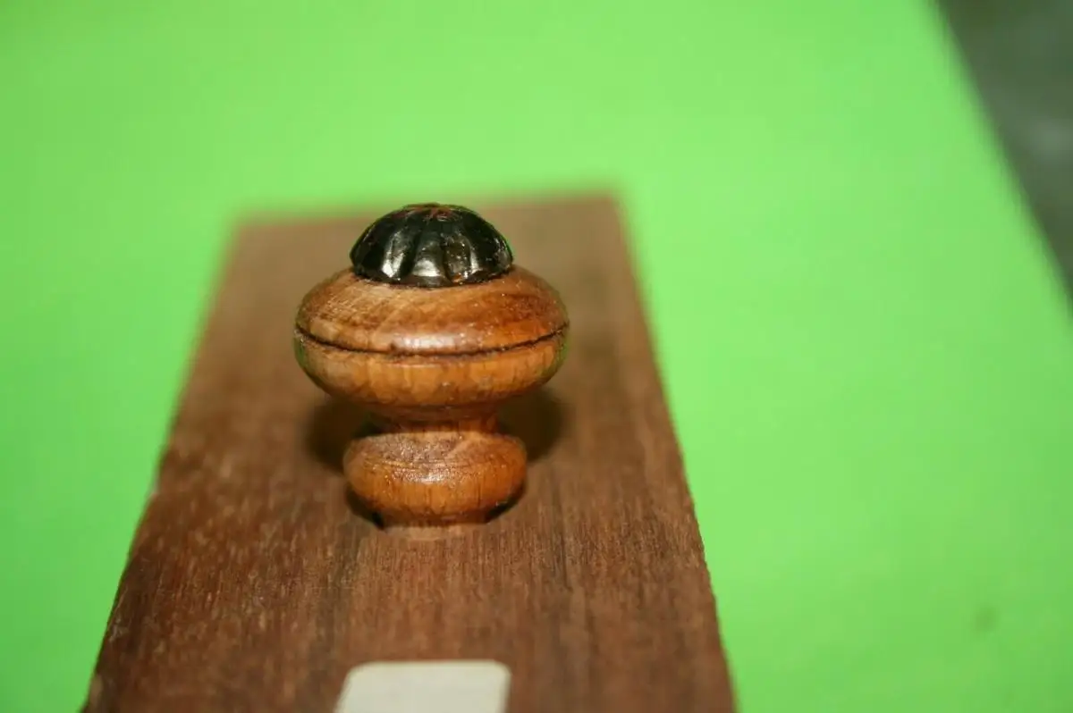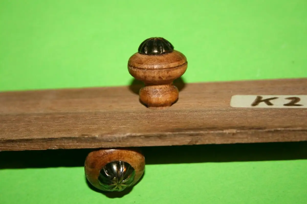 2x Handgefertigter Möbel-Knauf Messing-Krone Buche,Nussbaum gebeitzt Schellack versiegelt Lieferumpfang 2-Stück