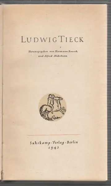 Bln., Suhrkamp 1943. 2 Bde. 414; 518 (4) S. OLn. Einbd. leicht berieb.