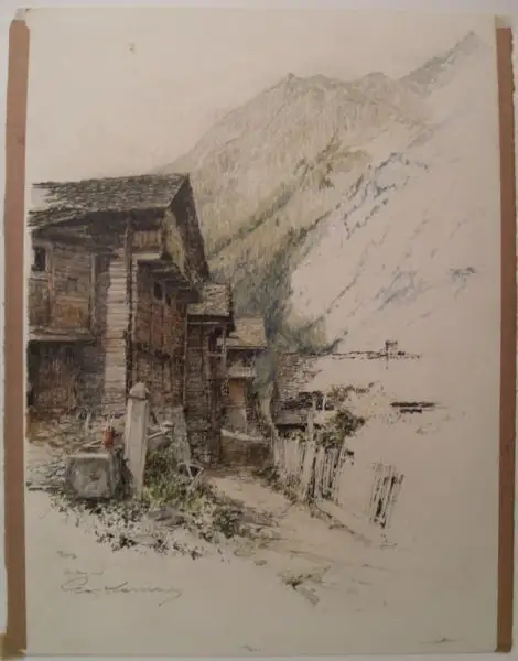 26. August 1946. Orig.-Buntstiftzeichnung. 41 x 32 cm. Seitenränder mit 1 cm. breiten Papierstreifen überklebt.