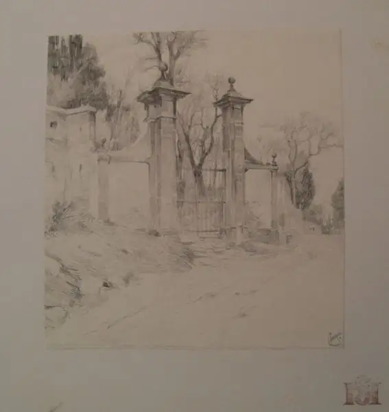 [ca. 1910] Orig.-Bleistiftzeichnung. 7 x 6 cm. auf Karton mont. In sehr gutem Zustand.