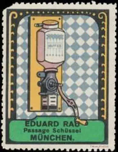 Kaffeemühle, Größe/Zustand: 6x5 , beschädigt, Original alte Reklamemarke die seinerzeit für die Werbung benutzt wurde