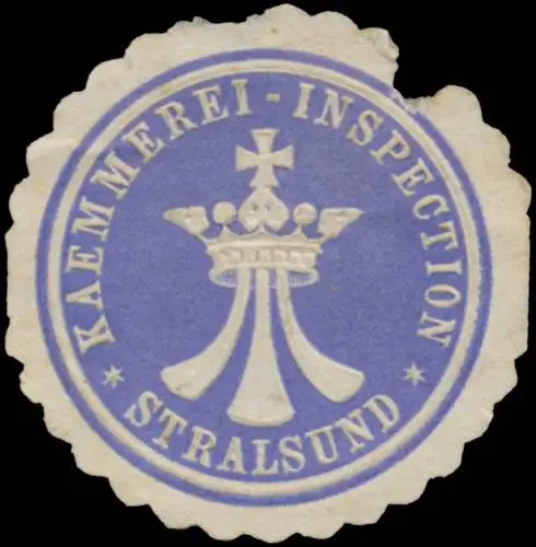 Kaemmerei, blau, weiß, geprägt, Größe/Zustand: 3 , beschädigt, Original Verschluss-Siegelmarke aus Papier welche früher von Behörden, Firmen etc. zum Versiegeln der Briefe benutzt wurden