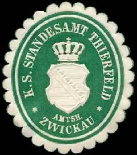 Königlich Sächsisches Standesamt Thierfeld - Amtshauptmannschaft Zwickau
