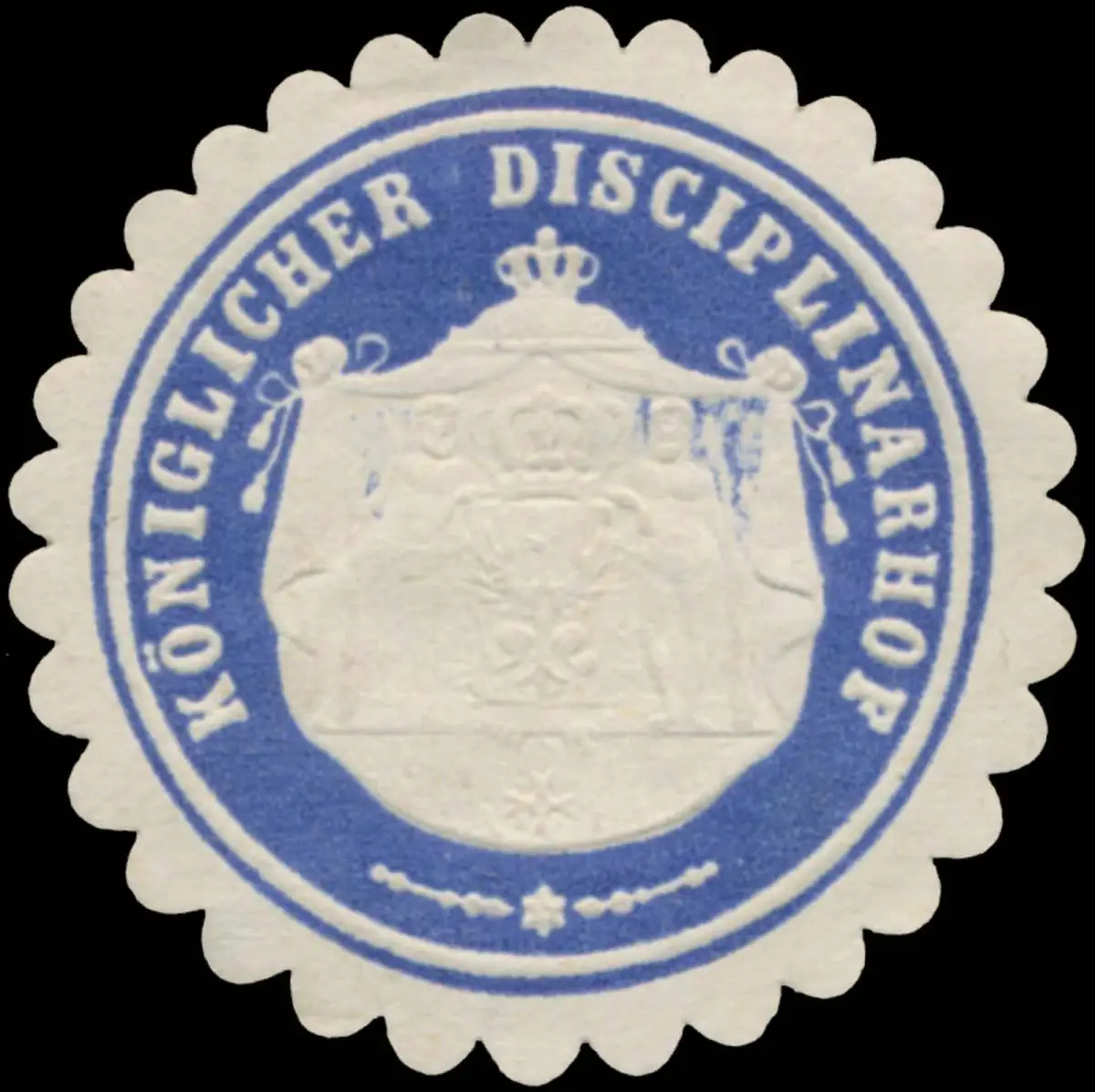 Diciplinarhof, blau, weiß, geprägt, Größe/Zustand: 4 , guter Zustand, Original Verschluss-Siegelmarke aus Papier welche früher von Behörden, Firmen etc. zum Versiegeln der Briefe benutzt wurden