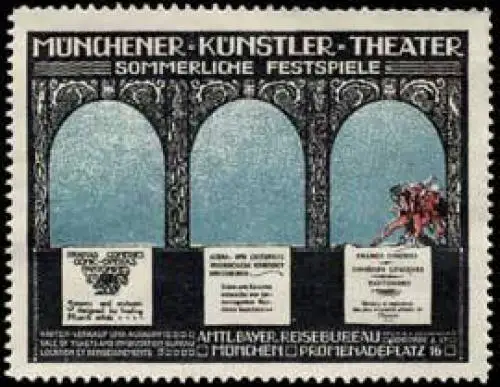 Sommerliche Festspiele, Münchener Künstler Theater, Größe/Zustand: 5x6 , guter Zustand, Original alte Reklamemarke die seinerzeit für die Werbung benutzt wurde