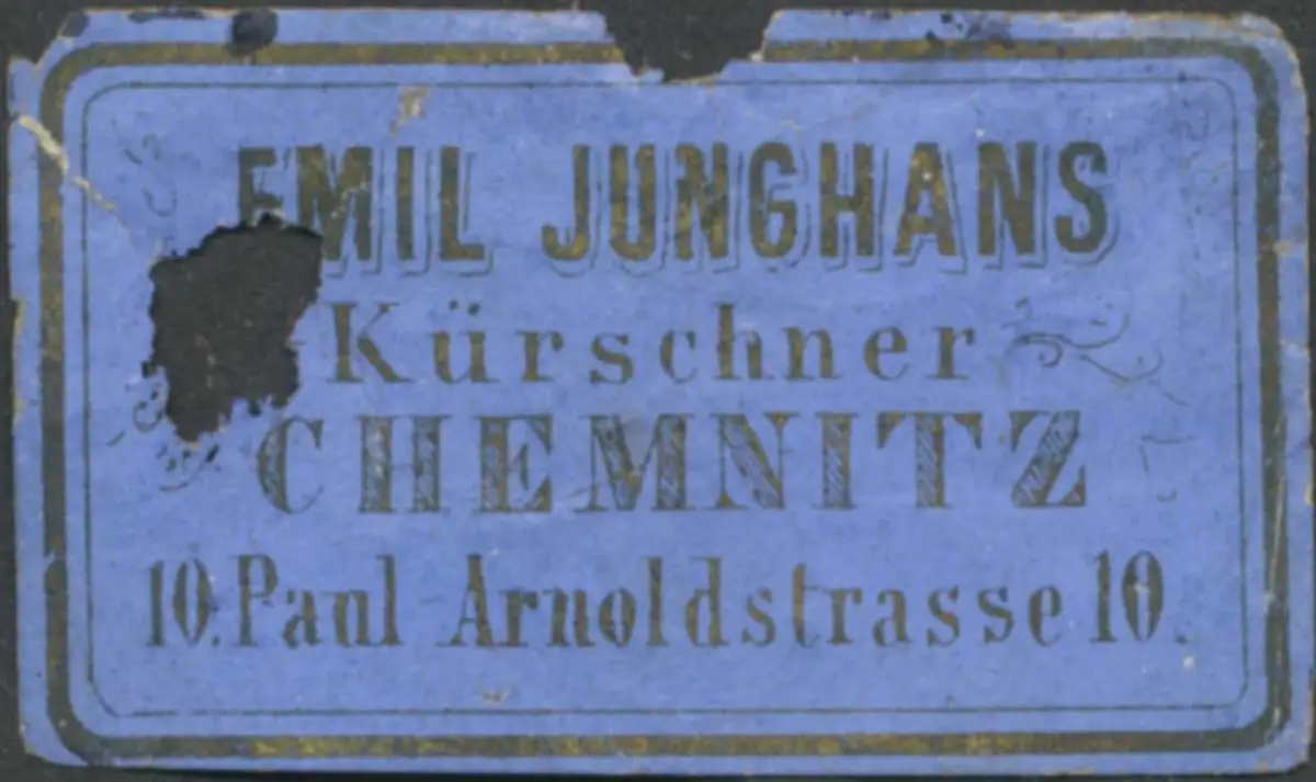Pelze, Paul Arnoldstraße 10, Größe/Zustand: 2x4 , beschädigt, Original alte Reklamemarke die seinerzeit für die Werbung benutzt wurde