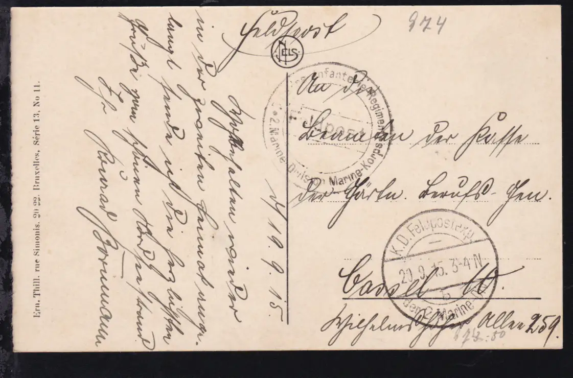 K.D. Feldpostexp. Der 2. Marine-Div. b 20.9.15 + Steg-K2
