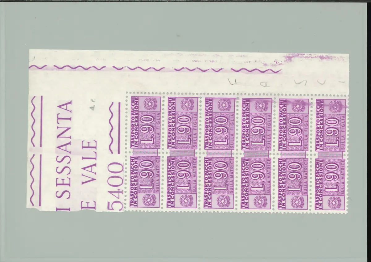 MNH - Vollgummi - KONZESSION 90 L. VERTIKALER FARBFLECK AUF GRÜNEM STREIFEN. DI 6 A.DI.F. Cod. ITAV_1567