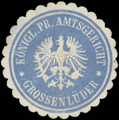 Grossenlüder, blau, weiß, geprägt, Größe/Zustand: 4 , guter Zustand, Original Verschluss-Siegelmarke aus Papier welche früher von Behörden, Firmen etc. zum Versiegeln der Briefe benutzt wurden