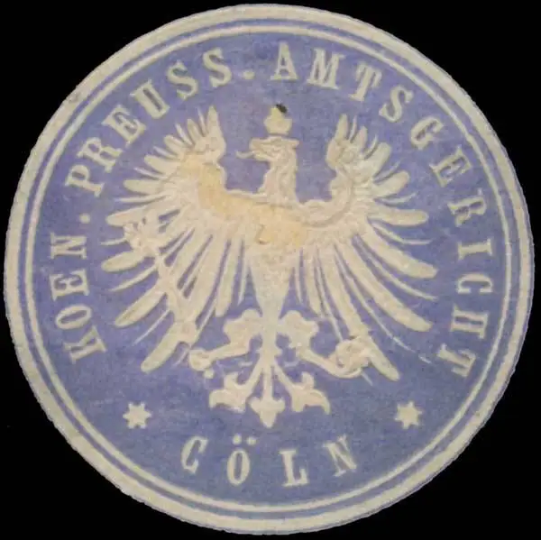 Cöln, blau, weiß, geprägt, Größe/Zustand: 3 , beschädigt, Original Verschluss-Siegelmarke aus Papier welche früher von Behörden, Firmen etc. zum Versiegeln der Briefe benutzt wurden
