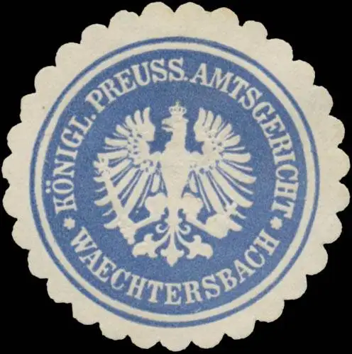 Waechtersbach, blau, weiß, geprägt, Größe/Zustand: 3 , guter Zustand, Original Verschluss-Siegelmarke aus Papier welche früher von Behörden, Firmen etc. zum Versiegeln der Briefe benutzt wurden