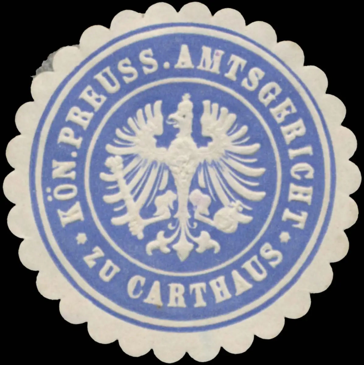 Carthaus, blau, weiß, geprägt, Größe/Zustand: 4 , guter Zustand, Original Verschluss-Siegelmarke aus Papier welche früher von Behörden, Firmen etc. zum Versiegeln der Briefe benutzt wurden
