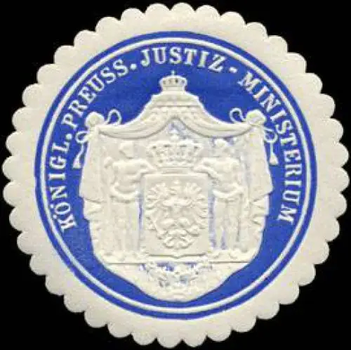 Justiz - Ministerium, weiß, blau, geprägt, Größe/Zustand: 4 , guter Zustand, Original Verschluss-Siegelmarke aus Papier welche früher von Behörden, Firmen etc. zum Versiegeln der Briefe benutzt wurden