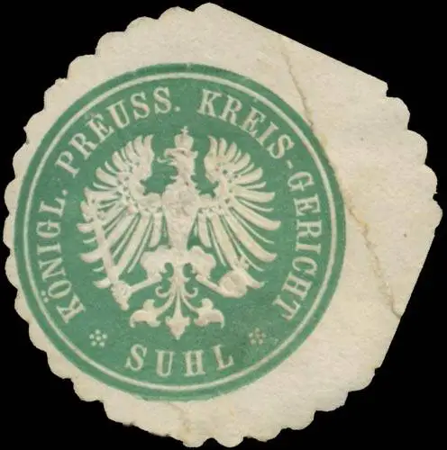 Kreis-Gericht, grün, weiß, geprägt, Größe/Zustand: 4 , Fehldruck, beschädigt, Original Verschluss-Siegelmarke aus Papier welche früher von Behörden, Firmen etc. zum Versiegeln der Briefe benutzt wurden