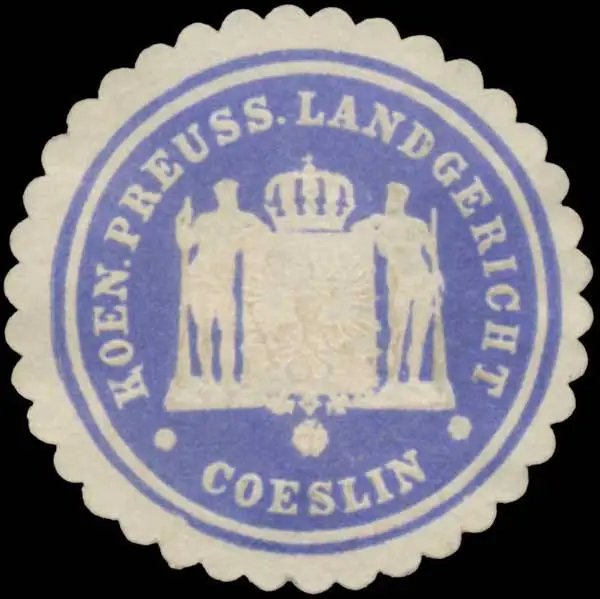 Coeslin, blau, weiß, geprägt, Größe/Zustand: 4 , guter Zustand, Original Verschluss-Siegelmarke aus Papier welche früher von Behörden, Firmen etc. zum Versiegeln der Briefe benutzt wurden