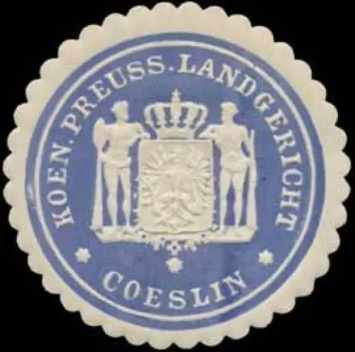 Coeslin, blau, weiß, geprägt, Größe/Zustand: 4 , guter Zustand, Original Verschluss-Siegelmarke aus Papier welche früher von Behörden, Firmen etc. zum Versiegeln der Briefe benutzt wurden