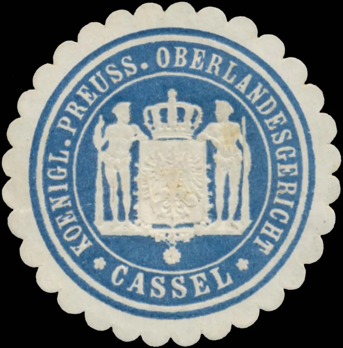 Cassel, blau, weiß, geprägt, Größe/Zustand: 4 , guter Zustand, Original Verschluss-Siegelmarke aus Papier welche früher von Behörden, Firmen etc. zum Versiegeln der Briefe benutzt wurden