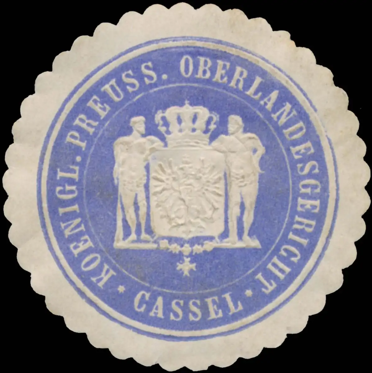 Cassel, blau, weiß, geprägt, Größe/Zustand: 4 , guter Zustand, Original Verschluss-Siegelmarke aus Papier welche früher von Behörden, Firmen etc. zum Versiegeln der Briefe benutzt wurden