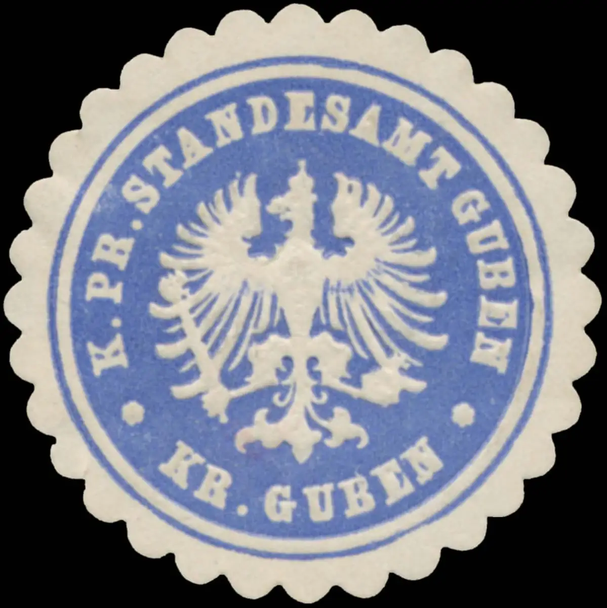 Kreis Guben, blau, weiß, geprägt, Größe/Zustand: 3 , guter Zustand, Original Verschluss-Siegelmarke aus Papier welche früher von Behörden, Firmen etc. zum Versiegeln der Briefe benutzt wurden