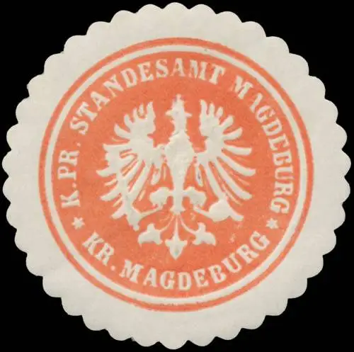 Kreis Magdeburg, rot, weiß, geprägt, Größe/Zustand: 4 , guter Zustand, Original Verschluss-Siegelmarke aus Papier welche früher von Behörden, Firmen etc. zum Versiegeln der Briefe benutzt wurden
