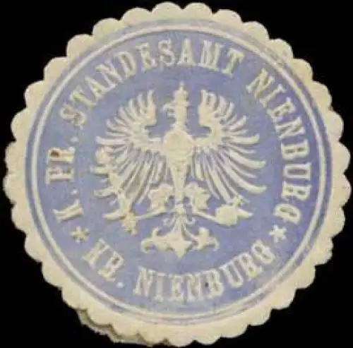 Kreis Nienburg, blau, weiß, geprägt, Größe/Zustand: 3 , leicht fleckig, Original Verschluss-Siegelmarke aus Papier welche früher von Behörden, Firmen etc. zum Versiegeln der Briefe benutzt wurden