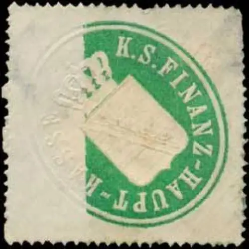 Finanz-Haupt-Kasse, grün, weiß, geprägt, Größe/Zustand: 3x3 , Fehldruck, beschädigt, Original Verschluss-Siegelmarke aus Papier welche früher von Behörden, Firmen etc. zum Versiegeln der Briefe benutzt wurden