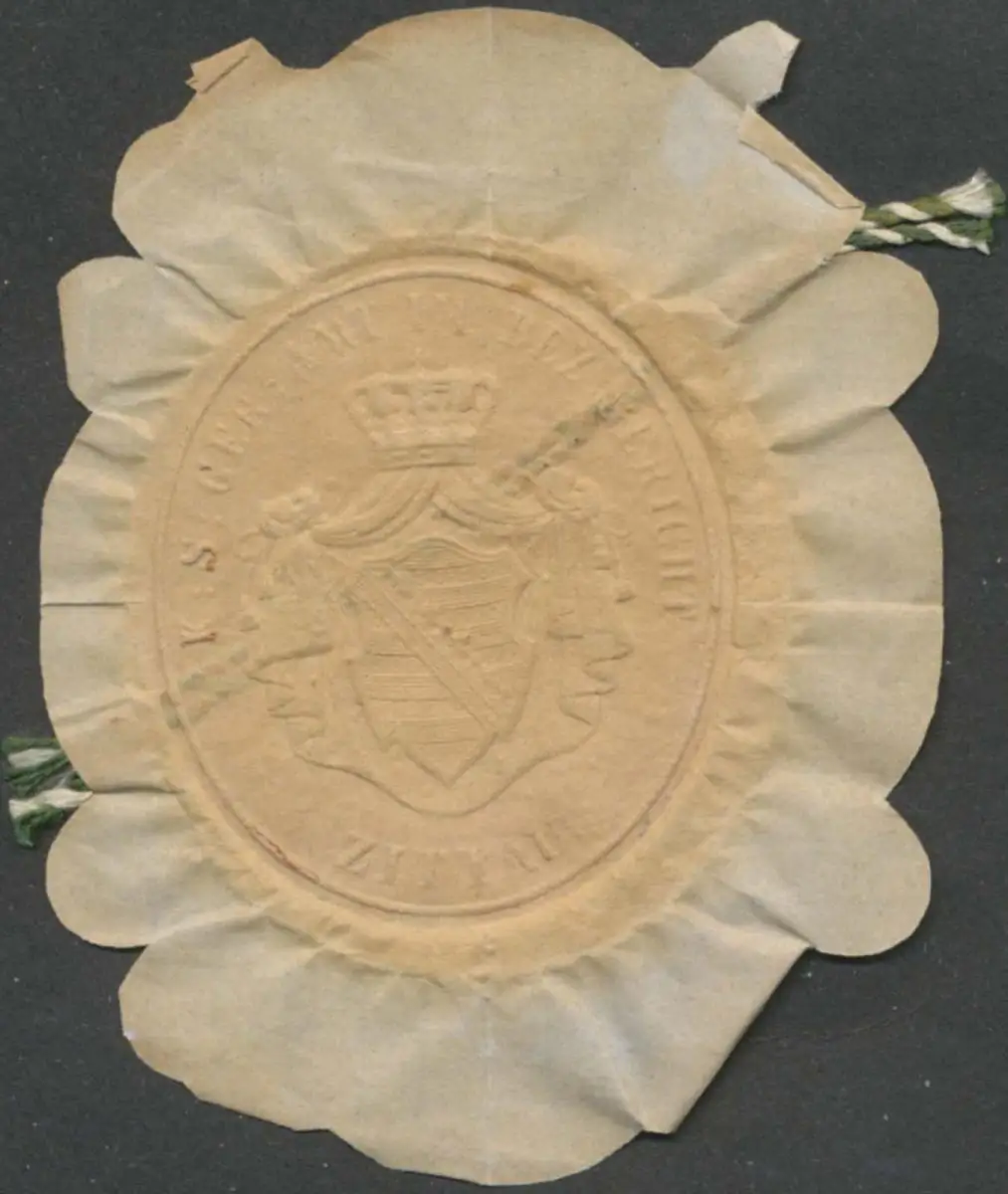weiß, geprägt, Größe/Zustand: 7x5 , beschädigt, Original Verschluss-Siegelmarke aus Papier welche früher von Behörden, Firmen etc. zum Versiegeln der Briefe benutzt wurden