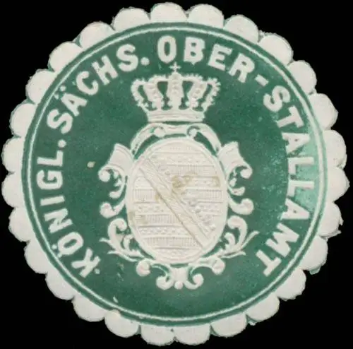 Oberstallamt, Pferde, grün, weiß, geprägt, Größe/Zustand: 3 , leicht beschädigt, Original Verschluss-Siegelmarke aus Papier welche früher von Behörden, Firmen etc. zum Versiegeln der Briefe benutzt wurden