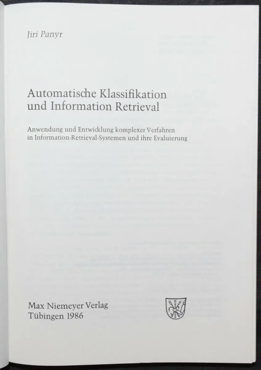 Automatische Klassifikation und Information Retrieval. Anwendung u.