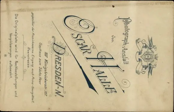 Zustand, siehe Scan, ungelaufen- Fotograf Oscar Halle, Dresden Neustadt - ca 11 cm X 17 cm