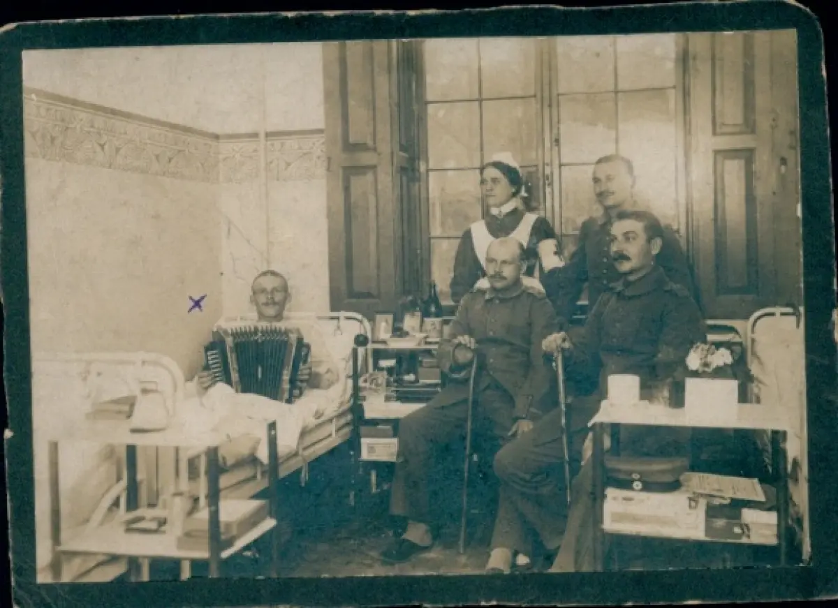 Kabinett Foto Eberswalde in der Mark, Deutsche Soldaten im Lazarett, Krankenschwester