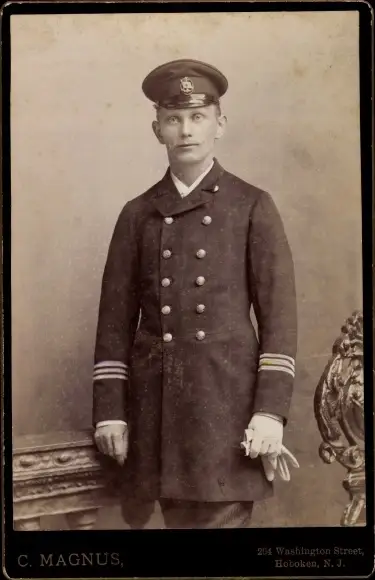 Kabinett Foto Seemann der Handelsmarine in Uniform, Portrait
